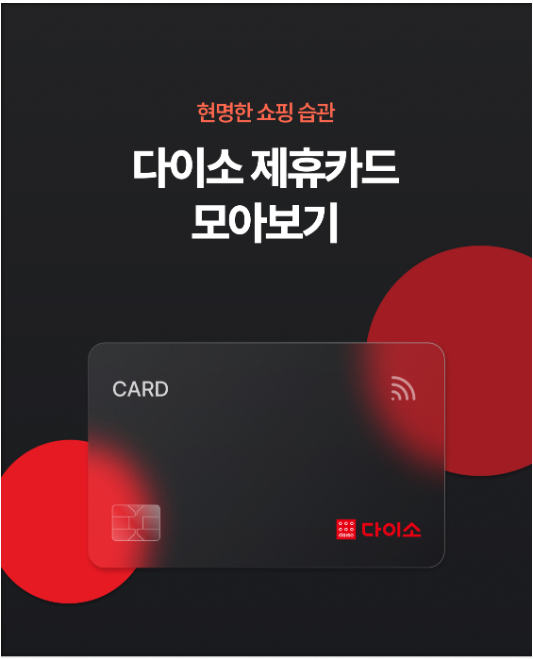 다이소와 제휴하여 발급되는 신용카드 및 체크카드는 신한카드와 삼성카드, IBK카드사에서만 발급이 가능합니다.