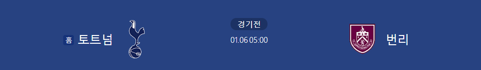 | 01월 06일 | 오전 05시 00분 | 토트넘 VS 번리 | 토트넘 홋스퍼 스타디움 |