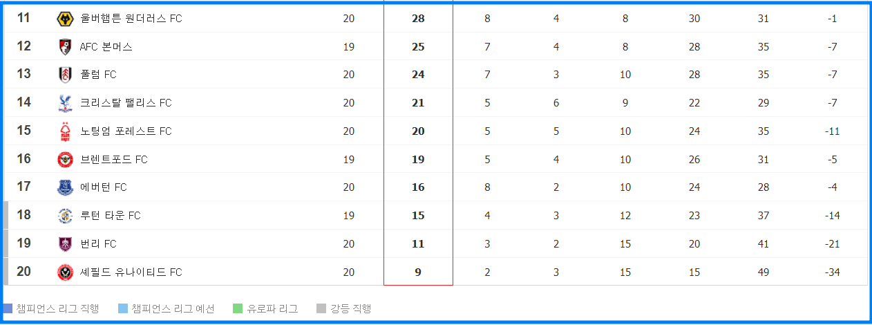 다음은 2023, 24년 프리미어 리그 팀 순위로 현재 토트넘 홋스퍼 FC는 5위에 기록되어 있습니다.