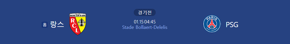 2024년 1월 파리 생제르맹(PSG)과 랑스(RCL)의 첫 경기가 15일 한국시간 04시 45분에 예정되어 있습니다. 생제르맹은 랑스팀과 23년 총 3회의 경기를 치룬 가운데 생제르맹이 2대 1로 승리하였습니다.